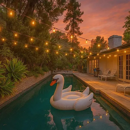 6 Minutes To Universal With Game Room, Heated Pool & Spa ロサンゼルス 別荘は、レイク ハリウッド パークから徒歩でわずか5分に位置し、プライベートなプールでリラックスしたひとときを過ごすことができます。